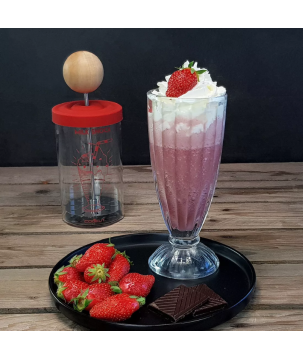 Dans le shaker, ajoutez du lait, de la glace et du sirop. Pompez 20 secondes. Votre milkshake est pret ! Amusez vous à varier les parfums. Décorez votre milkshake avec de la chantilly, des biscuits, des fruits... Et pour faire durer le plaisir, dégustez le avec une paille !