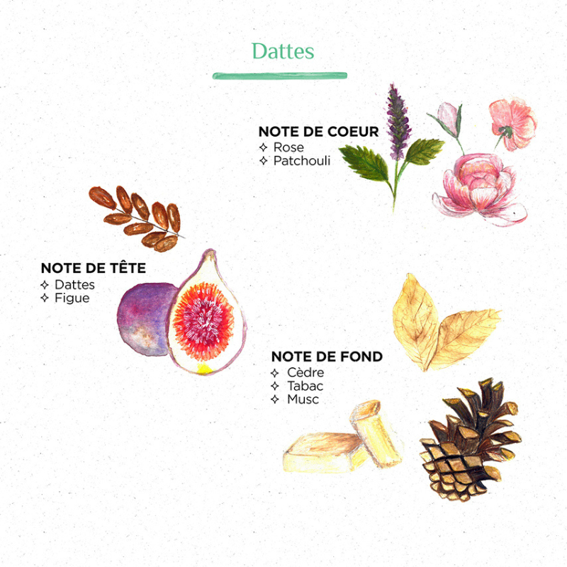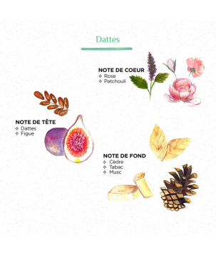 Découvrez un souggle d'élégance, véritable hommage aux palmiers dattiers de Marrakech. La fragrance vous enveloppe dans une signature olfactive onctueuse et sucrée, révélant des notes gourmandes de patchouli, cèdre, tabac, musc et dattes. une expérience sensorielle exquise qui capture la richesse et la beauté des dattiers du Maroc.