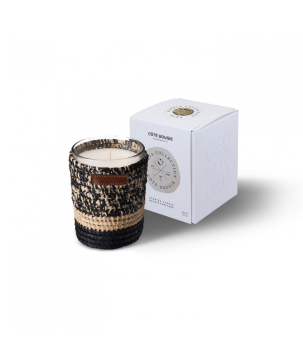 Bougie parfumée en raphia tissé à la main.