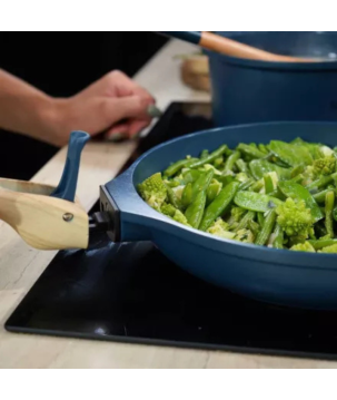 Trio poêles et casserole avec poignées détachables.