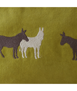 Ornée de délicates broderies d’ânes noirs et beiges,elle évoque l’authenticité et la sérénité des balades à travers la campagne.