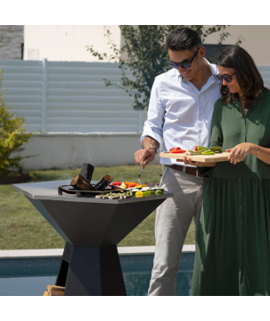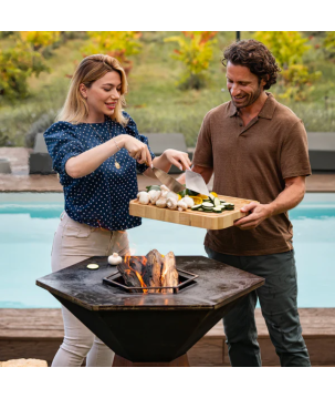 Le Brasero Plancha Agape 85 Corten , 100% français garantit une qualité de fabrication unique. De plus, son plateau est certifié pour le contact alimentaire, ce qui vous permet de cuisiner directement dessus en toute sécurité. Grillez, saisissez ou faites mijoter vos plats préférés et profitez d'une expérience culinaire exceptionnelle en plein air.