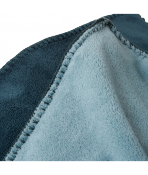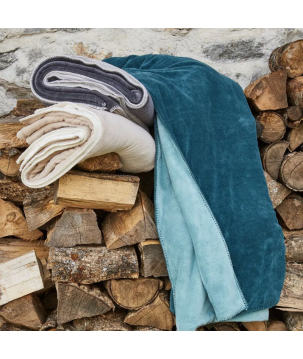 Plaid polaire velours bicolore (réversible) une face couleur vert sauge et une face bleu céladon.