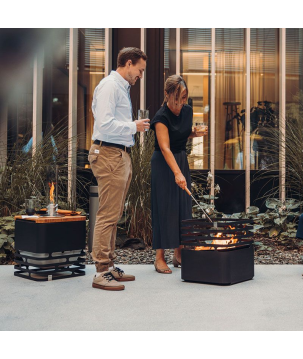 La soirée et le feu touchent à leur fin et vous vous inquiétez de laisser les derniers restes de bois ardents tout seuls ? Pas de problème : CUBE enferme les braises, réduit les étincelles et conserve les cendres en toute sécurité.